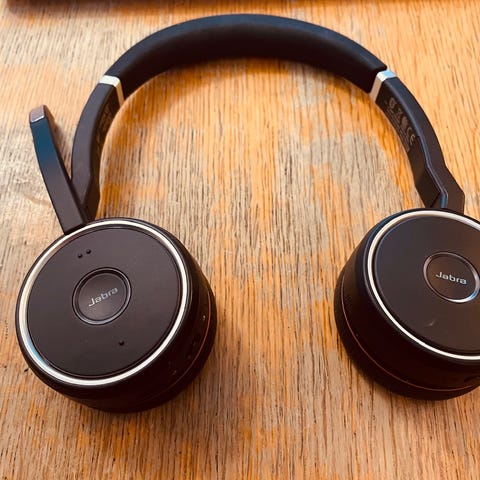 Jabra Evolve 75 trådløst headset i sort utførelse med oransje detaljer. On-ear hodetelefoner med integrert mikrofon og justerbar hodebøyle. Headsettet er egnet for bruk med PC og mobil via trådløs tilkobling (Bluetooth)Øreklokkene har myke puter og kontrollknapper på siden for enkel betjening. Passer til tale, videomøter og generell kontorbruk. Stativet som vises på bildene(verdi 250,-) kan eventuelt brukes som hodetelefonholder. Pent brukt, strømledning medfølger.