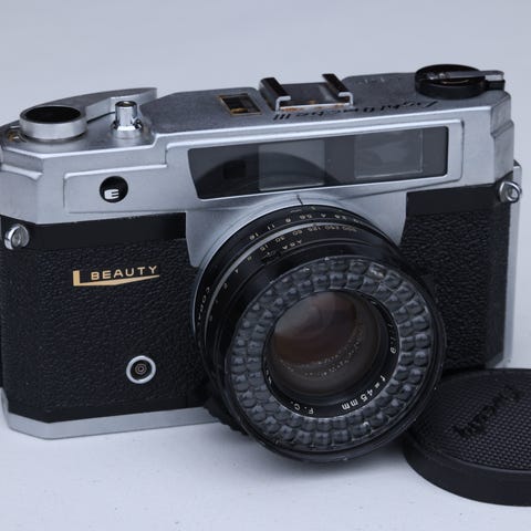 Manual focus 35mm rangefinder camera released by Yashica in 1970. The GS is the third member of the Electro series and features longer-lasting electronics than previous models. The camera is made for PX32 batteries, but can be used with the more common 4LR44 with the proper adapter. Metal body available in silver.
