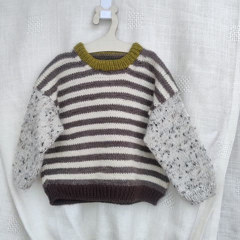 Nytt, hjemmestrikket sett i myk og lett garn (Sterk fra Du Store alpakka 40 % alpakka, 40 % merinoull og 20 % nylon).