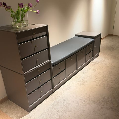 3 kuber med skuffer og 12 stykker med skap