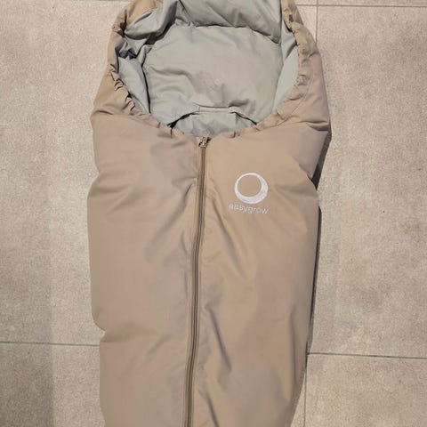 Easygrow bilstolpose i svart med lys grå innside. Vognposen har myk, vattert innside og glidelås i front for enkel åpning og lukking. Den har åpninger på baksiden for seler, slik at den kan festes i bilstol og vogn. Passer også i vogn mens barnet er lite. Veldig pent brukt