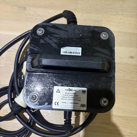 Bærbar lader til Renault Zoe (eller andre bilen med Schuko kontakt) . 10 Amp. Denne gjør at du kan lade din Zoe med 230 Volt vanlig stikkkontakt Schuko.