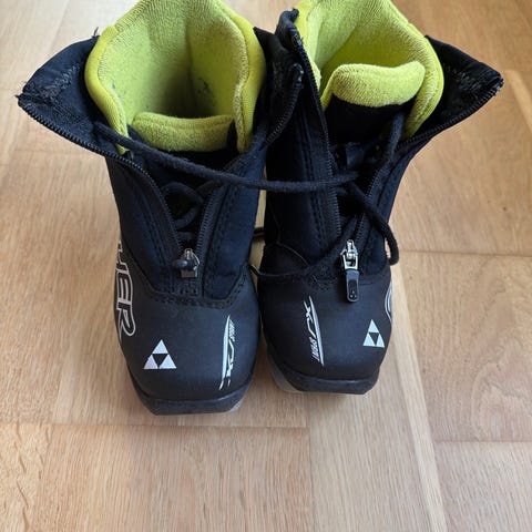 Fischer langrennsstøvler i svart og gul farge. Støvlene har glidelås i front og integrert overtrekk som dekker lissesystemet. Sålen er tilpasset moderne langrennsbindinger (NNN/Turnamic-lignende system). Myk og polstret innersko med gul innside og hemper bak for enklere av- og påtaking. Egnet til klassisk langrennstrening og turbruk. Skosåle 23 cm, tror det er str 36