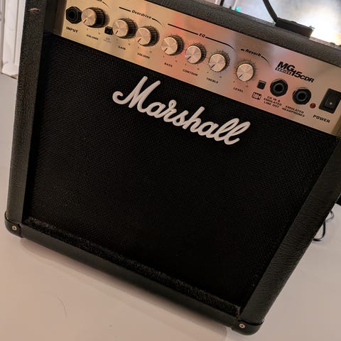 Marshall MS-2R gitarforsterker mini i rød utførelse. Kompakt batteridrevet forsterker egnet for elektrisk gitar. Modellen har volum- og tonekontroll samt bryter for clean/overdrive. Fronten har inngang for gitar, og på siden er det tilkobling for strømforsyning. Baksiden har belteklips for enkel bæring. Praktisk løsning for øving og bruk der det er begrenset plass.