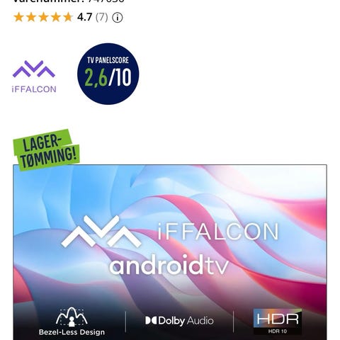 Helt grei TV selges da vi rett og slett ikke har bruk for den lenger. Kjøpt på Elkjøp i mai 2025.