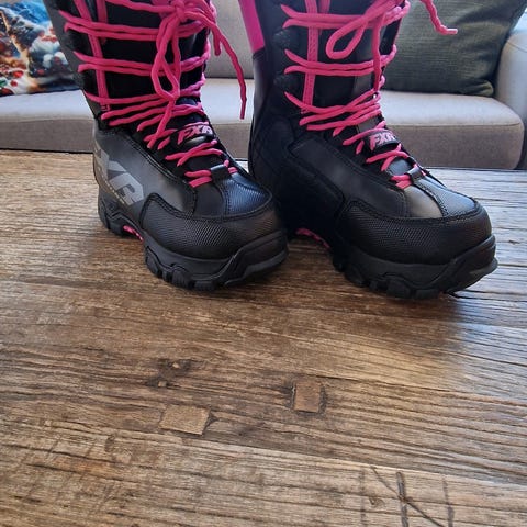 Icebug støvletter med pigger i størrelse 42. Støvlettene har rødt yttermateriale med mørke forsterkninger på tå og hæl, samt grov yttersåle med integrerte pigger for bedre feste på glatt underlag. Modellen har glidelås foran for enkel av- og påkledning. Egnet til fotturer og bruk på vinterføre og annet underlag der ekstra grep er ønskelig.