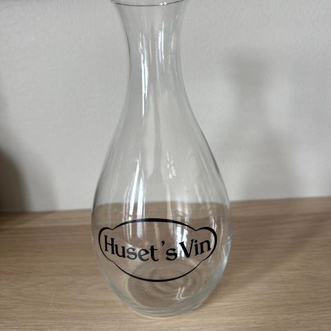 Vinkaraffel med påskrift "Husets vin"