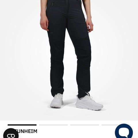 Forsterket, slitesterkt materiale på buksebaken og innsiden av buksebenet nederst. Glidelås hele siden som gjør det enkelt å lufte hvis det blir varmt og ta av og på buksen med sko på.