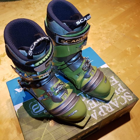 Tur- Telemark støvel fra Scarpa, NN75 mm, legendarisk for topptur, fjelltur og telemark. Denne er brukt på Fisher Extreme fjellski og tilpasset med NN75 Voile binding. Skiene kan selges sammen med støvlene, en super pakke. Solgt sammen med skiene kr 3500 for pakken.