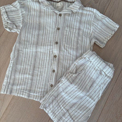 Nydelig sett fra Lil'Atelier med kortermet skjorte og shorts i fargen lys beige.