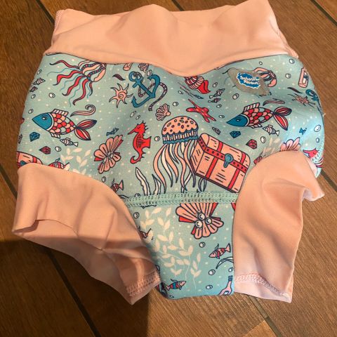 Badebleie fra zigzag. Str L, tilsvarer str 92-98.