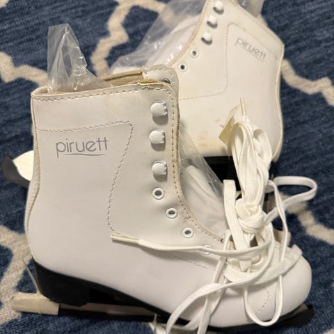 CCM piruette kunstløpskøyter i størrelse 37. Klassiske hvite skøyter med snøring og høyt skaft for støtte rundt ankel. Egner seg godt til generell skøytebruk. Skøytene har tradisjonell utforming med flere snørehull for justering av passform.