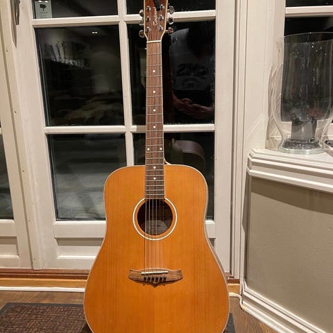 Morgan akustisk gitar i dreadnought‑form. Dette er en w-970s og var i sin tid toppmodellen i Morgan sin katalog for drøyt 20 år siden. Heltre ceder i lokket og laminert rosewood i sidene.