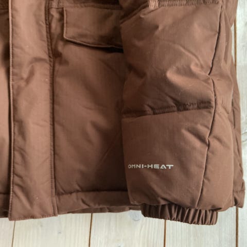 Columbia vinterjakke for herre i størrelse M. Jakken er blå. Den har hette, frontlukking med glidelås og trykknapper, samt flere lommer foran og en innerlomme med glidelås. Innvendig har jakken et fôr med Omni-Heat-detaljer som bidrar til varmeisolasjon. Passer til bruk i kaldt vær og vinterforhold.