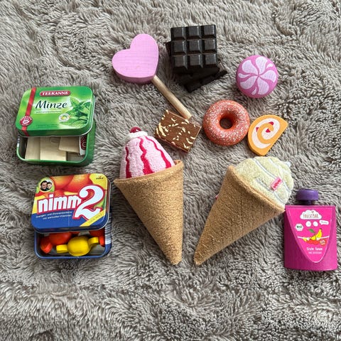 Barne kjøkken utstyr med kake, kaffe maskin og pepperkaker set
