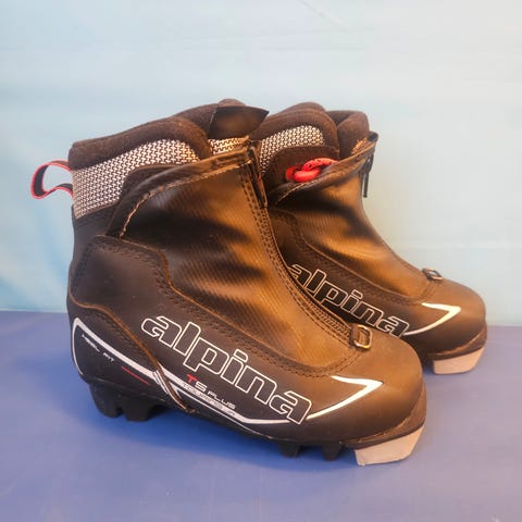 Alpina langrennsstøvler i svart farge. Modellen har snøring foran og hempe bak for enklere på- og avtagning. Glidelåsbeskyttelse