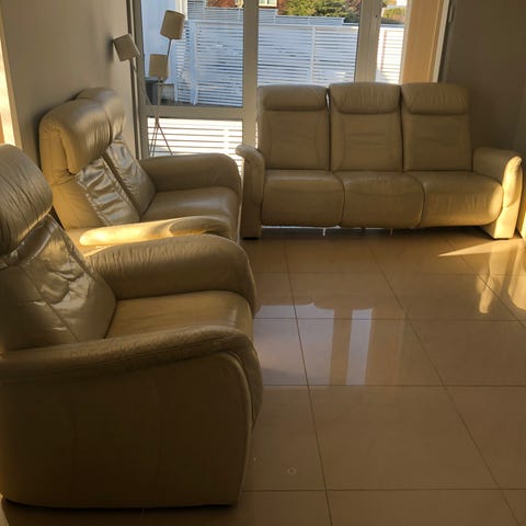 Sofa 3-seter i brun ekte skinn. Sofaen har polstret rygg og sete med tre sitteplasser. Klassisk utforming med avrundede armlener og hel ryggpute. Passer til stue eller TV-stue der det er behov for en romslig sitteplass.