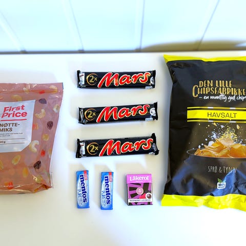 Har en åpnet pose med Reese’s Pieces som er åpnet og smakt på som også kan følge med.