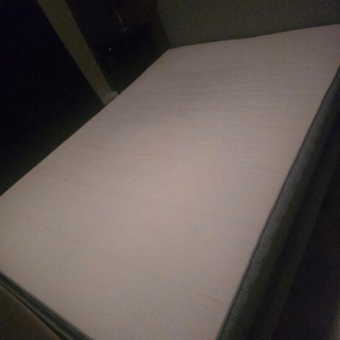 IKEA seng med sengebunn i størrelse 140x200 cm. Rammekonstruksjon med hodegavl og ribbebunn i tre. Tekstiltrukket ramme i grå farge og ben i tre eller trelignende materiale. Passer til standard madrass i størrelse 140x200 cm. Madrass følger ikke med, kjøpt ny på IKEA ifjor sommer.