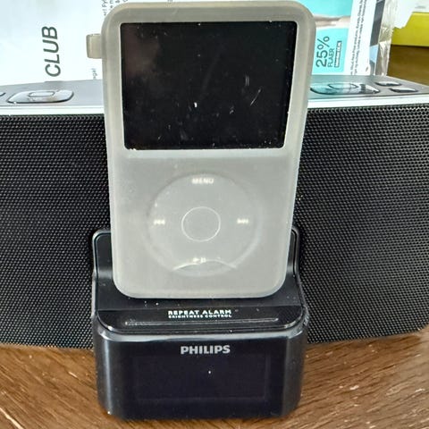 Pen Apple Hi-Fi i god stand selges. Følger med fjernkontroll. Kan brukes med iPod dock eller som høytaler med Aux. Fungerer som stasjonær høytaler, men også bærbar med batterier.