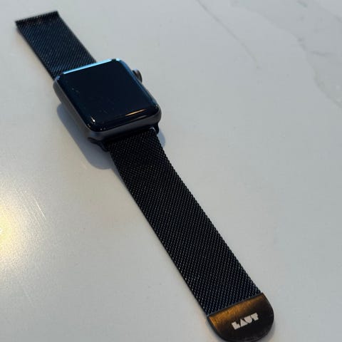 Selger en som ny Milanese Loop Band i sort, kompatibel med Apple Watch 49mm / 46mm / 45mm / 44mm. Reimen er brukt et par ganger og kommer i original eske.