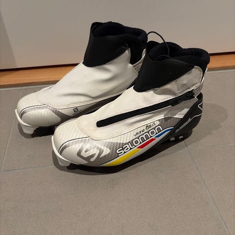 Rossignol skisko i størrelse 37,5. Modellen har overtrekk med glidelås foran for å beskytte mot snø og fukt og innvendig snøring. De er pent brukt.