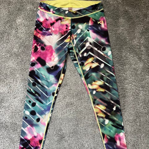 Bara Sportswear treningstights for dame i størrelse M. Tightsen har flerfarget fjærmønster og er laget i et elastisk materiale som egner seg til fitness og annen trening. Bred linning for bedre passform. Passer til innendørs og utendørs treningsøkter.