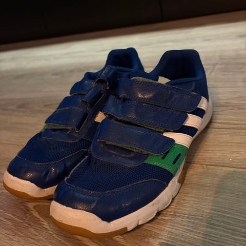 Adidas joggesko til gutt i størrelse 38. Skoene har overdel i syntetisk materiale og tekstil i hvit og burgunder farge, med snøring foran og klassiske Adidas-detaljer. Yttersåle i gummi med mønster for grep. Egnet som fritids- og hverdagssko.