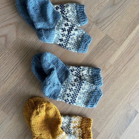 Tøfle sokker strikket etter mønster til Marte Helgetun sine Happy Feet. Sokkene er strikket i mykt merinoull fra Sandnes garn.