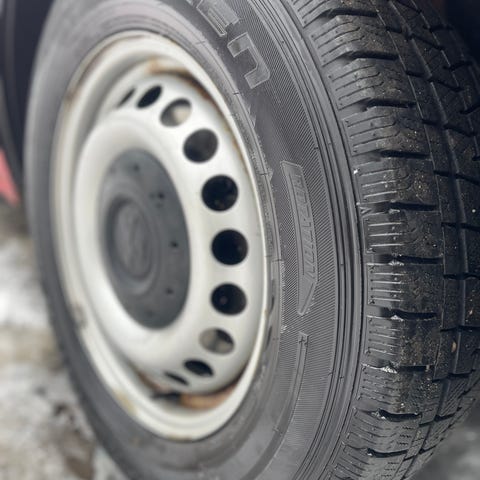 Greie hjul med piggfrie vinterdekk, holder vel 2 sesonger til. 205/65 R16 C