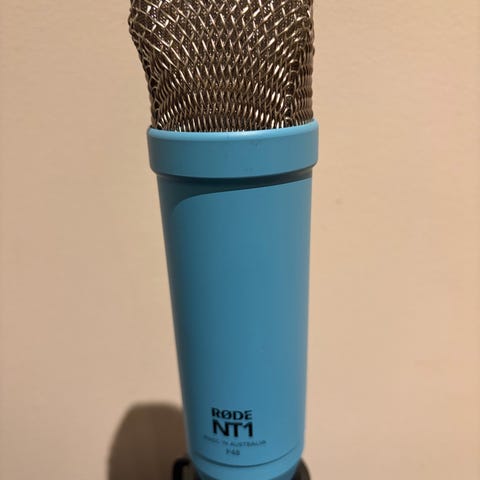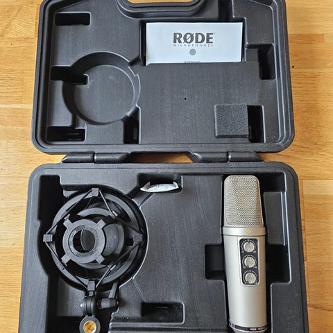 NT2A jeg kjøpte ny august 2022, veldig lite brukt, så god som ny. Kommer med utrolig bra Røde SMR shockmount, (spraylakket pop filteret i gull.)