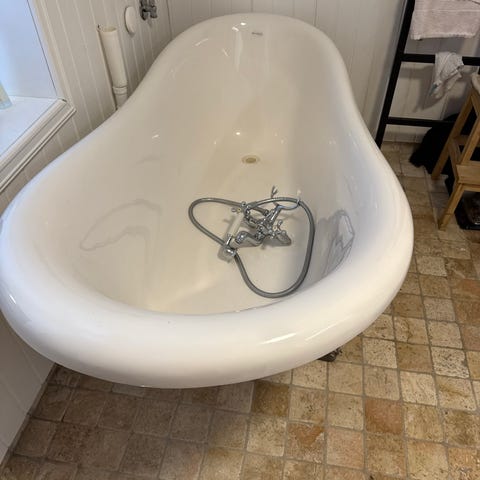 Bra merke og pent brukt badekar selges. Den har blitt brukt av barna i tidligere år, men nå har alle flyttet ut. .-) Prisen inkluderer kranen slik det ser ut på bildene.