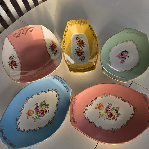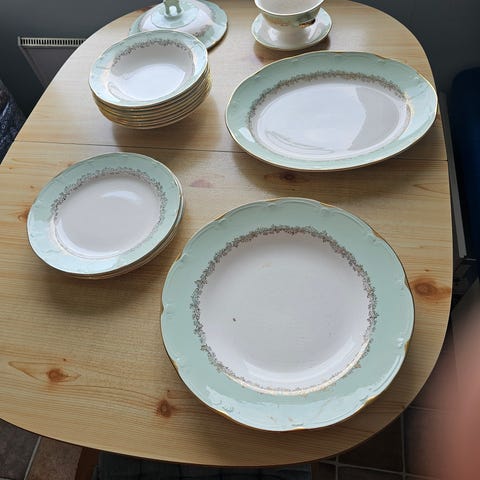 IKEA servise og skåler i blandet porselen og glass. Bildene viser flere små porselensskåler/tallerkener samt ulike glassboller i forskjellige farger. Egnet til servering av dessert, snacks eller til hverdagsbruk på kjøkken og spisebord. Antall deler og eksakte mål fremgår av bildene.