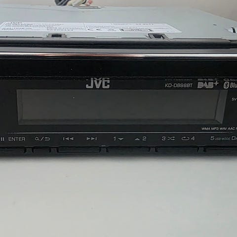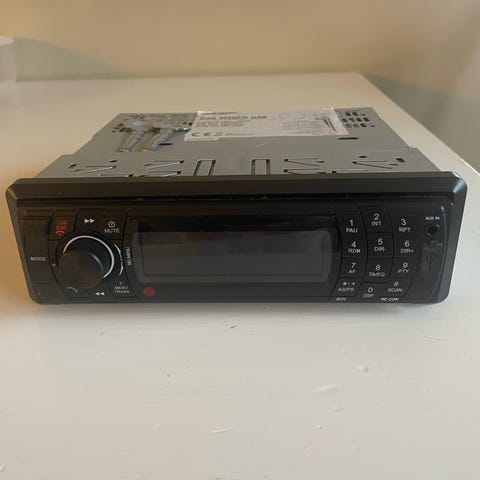 Clarion DB15BR bilradio med innebygd CD-spiller i sort/sølv og Sony CDX-GT24 bilradio med innebygd CD-spiller.