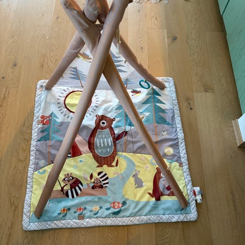 Babygym en hempe har røket og har ikke original pose til oppbevaring, ellers i god stand