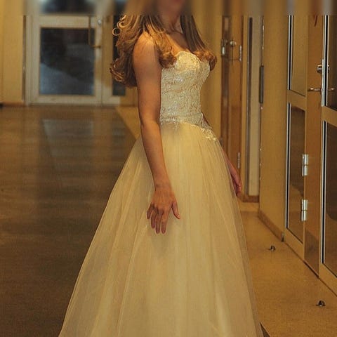 Ballkjole kun brukt en gang leies ut, kjøpt hos solbruden. Leier ut til kun 700,- man får ikke noe billigere tror jeg. Den er lys rosa/peach . Kom gjerne for prøving. Det er en XS-S , hun som brukte den er en S og er 173 cm høy .