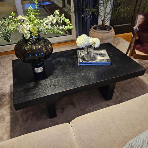 Selger 1 stk Antony sofabord fra Slettvoll med bordplate i glass og sort understell.