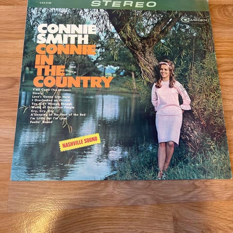 Connie Smith «Connie’s Country» vinylplate. Countryalbum utgitt på LP. Plateomslaget viser artistens portrett og låttitler på forsiden. Egnet for samlere av country og vinylplater.