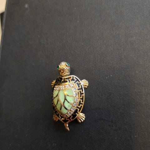Søt brosje med motiv av skilpadde med "krystaller".