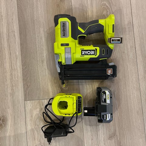 18v dykkertpistol med batteri og lader selges da den ikke blir brukt. Er som ny og kun blitt brukt til å skyte noen spiler på en vegg (mindre enn 100 skudd). Laveste pris i skrivende stund er 4219,-
