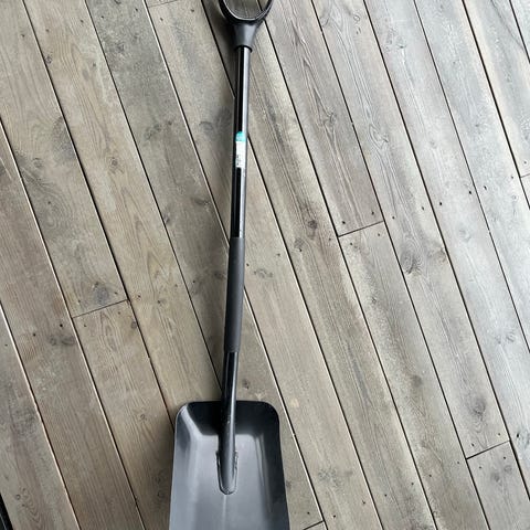 Solid spade i metall og tre.