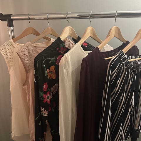 Klespakke str. 44 med bluser og skjorter: 5 plagg.