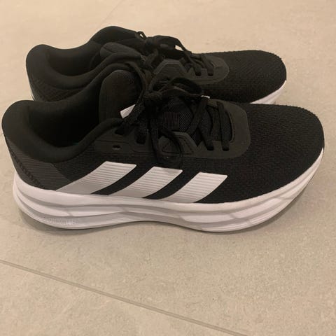Adidas joggesko i størrelse 37. Skoene er i svart semsket skinn med hvite detaljer og såle. Overdelen har snøring og klassiske Adidas-striper på sidene. Modellen passer til hverdagsbruk og lett aktivitet. Yttersålen er i gummi for bedre grep, og overdelen er i tekstil og syntetisk materiale for komfort og støtte.