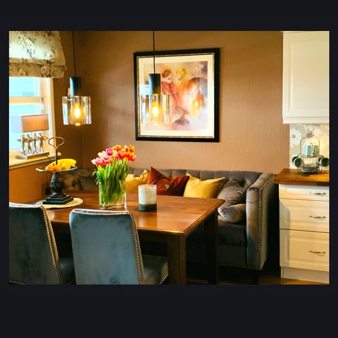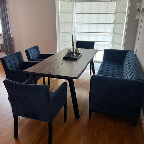 spisestuegruppe med sofa og 3 stoler