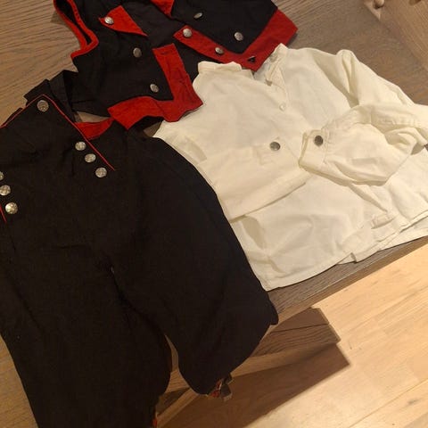 Festdrakt, tre deler. Skjorte, belte og drakt.