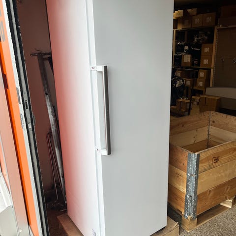 Siemens kjøleskap i stålutførelse. Frittstående høyskap med innvendig belysning, flere justerbare glasshyller, grønnsaksskuff og dørhyller for oppbevaring av flasker og mindre varer. Egnet som hovedkjøleskap på kjøkken med god lagringsplass for mat og drikke.