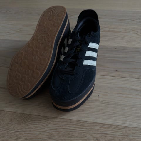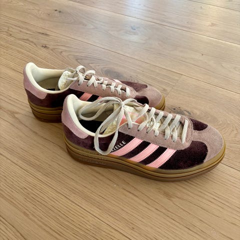 Adidas sneakers i størrelse 37. Skoene er i rosa nyanser med klassiske Adidas-striper på siden. Overdelen i skinn og veldig gode på føttene. Yttersålen er i gummi med platå. Passer som fritidssko og joggesko til hverdagsbruk.