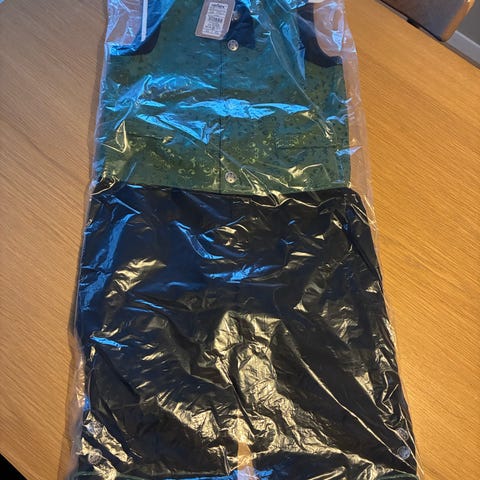 Hel og fin, men mangler noen knapper på buksa, knapper er å få tak i og lett å sys på. Selges derfor rimelig. Følger med lue og «sjal».