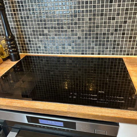 60 cm bred AEG induksjonstopp i svart utførelse. Platetoppen har integrert touch-betjening i front og flere kokesoner med induksjonsteknologi. Brofunksjon for å kombinere kokesoner. Passer til innbygging i kjøkkenbenk og krever tilkobling til egnet strømuttak i henhold til gjeldende forskrifter. Pent brukt og uten skader. Må hentes av kjøper i uke 12 (mellom 16 - 20 mars 2026).