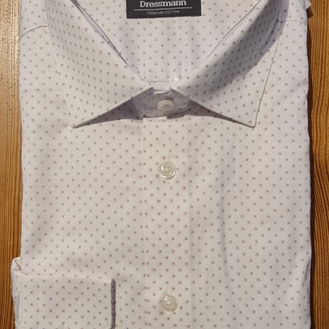 Flott og klassisk hvit penskjorte fra Dressmann Signature-kolleksjonen, laget i kvalitetsstoff fra Tessitura Monti (Italia).